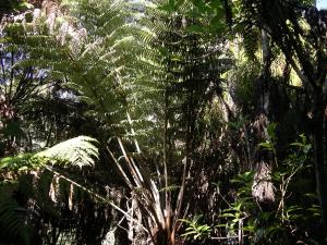 If you feel adventurous, walk the full length of the Kohekohe Valley and enter the mysterious world of the mamaku, or black tree fern (Cyathea medullaris). If you want to picnic, or throw a ball, head to the Arboretum – an area of open grassy spaces and interesting exotic trees, between the Nature Trail clearing and Beach Road.