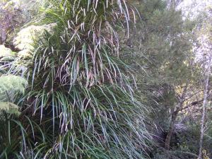 A fine rimu (Dacrydium cupressinum), planted in the 1940s, and more dragonleaf below