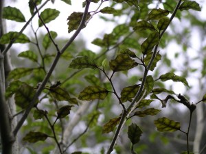 This large female pigeonwood (Hedycarya arborea) has numerous vertical, blackish epicormic shoots growing from its trunk.