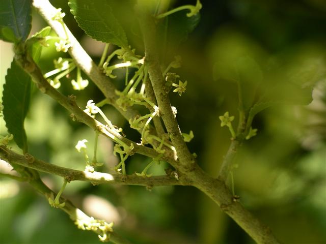 This grove of trees is māhoe, or whiteywood (Melicytus ramiflorus) – there are many around here. Note their white-patterned, sometimes mossy trunks, fine-toothed leaves and creamy scented flowers (early summer) which sprout directly from quite thick branches.