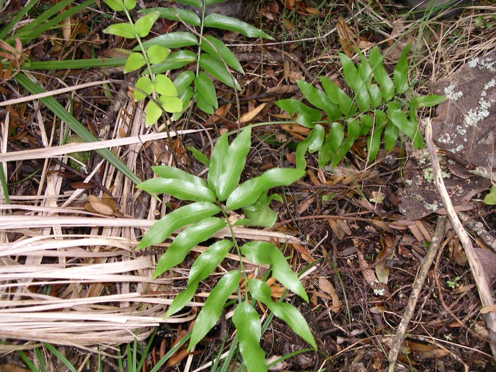 The glossy fern is shining spleenwort (Asplenium oblongifolium).